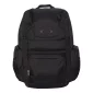 Sleek 600D backpack with padded laptop sleeve with side access, fleece-lined eyewear/media pocket, and interior organizer panel. Padded adjustable shoulder straps. 25L capacity. Fits most 15" laptops. 12 1/2" L x 19" H x 7 1/2" D
