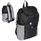 Journey Cooler Backpack features an upper compartment with drawstring closure and flap, an insulated lower compartment with dual zipper closure and a front pocket with hook-and-loop closure. Adjustable shoulder straps make for a comfortable journey. Complies with CPSIA, Prop 65. 10" L x 16" W x 5" H