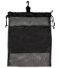 Made from poly mesh & 210D polyester. Features a partial mesh design to allow airflow, and top clip to attach to gym bag. It has dual drawstring closure and carrying cord with solid front panel for decoration. Great for gym gear, wet gear, lingerie washing, shoe bag, etc. 12" W x 15" H