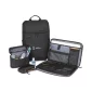 Optimal storage solutions for the mobile professional. Top flap zippered pocket for storing accessories. Front zippered pocket with key fob clip. Dual side stretch water bottle pockets. Dual zippered main compartment includes a padded laptop pocket (fits up to a 15" laptop) and zippered mesh pocket for additional organization. Complies with CPSIA, Prop 65. 5" W x 17" H x 11.75" L