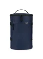 A modern and sustainable update to a functional backpack cooler using recycled fabric and webbing made from plastic bottles. Front zippered pocket for storing accessories. Dual zippered opening to large, insulated main compartment. Side webbing daisy chains to serve as attachment points. Dual carry options with adjustable, padded backpack straps and a convenient top grab handle. Holds 20 cans. Complies with CPSIA, Prop 65. 6.5" W x 14.75" H x 10" L
