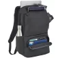 The elleven Evolve 17" Laptop Backpack is sleek enough for daily use, but roomy enough to be your new go-to travel backpack. The exterior of this backpack is made from 600D bluesign approved material, and can be easily wiped down between trips. The front features a hidden vertical front zippered pocket and a bottom zippered pocket with an organizational panel. The main compartment includes a zippered pocket and organizational panel on the front wall, while the back wall has a large slash pocket. 4.75" D x 12.75" W x 20.00" H