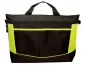 Briefcase includes 9.8"l handles. Front pocket measures approximately 11.75"w x 6.5"h. Hand-wash only. Wipe clean with damp cloth. Recommended weight tolerance: 11 lbs. Production time may vary due to imprint method. Complies with Prop 65. 15.35" W x 11.42" H x 2" D