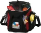 This sport cooler is constructed of 420D Nylon/Dobby and 600D Polyester. It has front and side zippered pockets and a mesh pocket to provide extra storage while the shock cord and removable/adjustable shoulder strap adds convenience. This 12 can capacity cooler has foam insulated heat sealed liner. 8" D x 9" W x 9" H