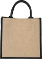 The Medium Jute Gift Tote features an open main compartment with a hook and loop closure and double 14" handles. Disclaimer: Minimum of 32pt. font size. Bold artwork only. No fine graphics or text. 7.50" D x 11.75" W x 11.75" H