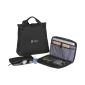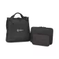 Optimal storage solutions for the mobile professional. Front zippered pocket. Dual zippered main compartment includes a laptop pocket (fits up to a 15" laptop). Includes 2 separate solutions for added organization: padded laptop commuter sleeve with interior multi-functional organizer (fits up to a 15" laptop and 10" tablet), large zippered pouch for storing gadgets and accessories. Complies with CPSIA, Prop 65. 7.5" W x 16.25" H x 17" L