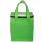 This 80 GSM non-woven polypropylene square lunch bag has 2 mm padded aluminum foil insulated lining. Features dual 16''l x 1''w carry handles, clear PVC ID slot on top panel (approximately 3.75"w x 2.75"h). Recommended weight tolerance: 8.5 lbs. Production time may vary due to imprint method. Complies with Prop 65. 8" W x 8.75" H x 6" D