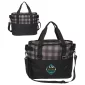 The Plaid Insulated Cooler Bag with its two-tone plaid and black design is constructed of 600D ripstop polyester with foam insulation and lining. The large, zippered main compartment with an adjustable web shoulder strap, two 20" reinforced webbed carry handles, and side handle loops allow multiple carry options. A bottle opener and a ring attachment for keys add convenience. Perfect for the beach, camping, sporting events, family travel, and almost any outdoor activity! Complies with FDA, Prop 65. 16" L x 7" W x 12" H