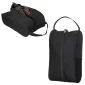 600D Polyester zippered shoe bag with main compartment breathable mesh, side mesh pocket, and webbed carrying handle measures 8.5"W x 14"H x 5.5" D is perfect for travel, the gym, or other shoe accessories. Complies with Prop 65. 8.5" W x 14" H x 5.5" D