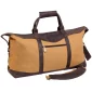 The duffel is a legal carry-on size with six antique brass bottom feet. The bag has protective polydrill lining & a matching luggage tag for identification. The shoulder strap has a non-slip/padded area & adjusts from 36" to 54" for the perfect carrying length. Or the strap can be detached & the bag carried with the two hook & loop closure closed handles. Complies with Prop 65. 22" W x 13" H
