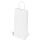 These popular white kraft-paper shoppers are functional, affordable and available in small to medium sizes. Include matching twisted paper handles and serrated cut top. Complies with CPSIA, FDA. 6" W x 3.25" D x 13" H