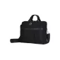 Made of polyester with vegan leather trim Inside pocket with built-in organizer Exterior zippered pockets Reinforced comfortable carry handles Padded laptop compartment – fits most 15.6" Trolley pass-through 2 exterior compartments. 12.5" H x 16" W x 3.25" D