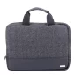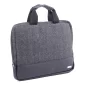 Made of polyester with vegan leather trims Main top zipper closure Back zippered pocket Reinforced handles Padded laptop section - fits most 14". 10.25" H x 13.25" W x 1.5" D