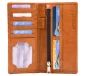 This slim wallet has a total of 13 pockets to store all of your important cards, along with an additional pocket to display your ID & a long zippered pocket to store loose change. A slim design that allows you to easily carry the wallet anywhere. Featuring 100% Tuscany full grain cowhide leather. Our products are crafted from 100% genuine leather. This premium leather shows off a natural range of shades and textures. We use full grain leather, which is the ultimate quality in leather available. 8.07" L x 3.82" W x 3.82" H