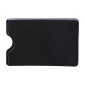 PVC plastic RFID (Radio Frequency Identification) sleeve/pocket protects your personal data stored electronically on credit cards, etc. There's hidden aluminum sheeting under PVC for RFID protection. Holds 1 credit card. This item is not designed to attach to anything; it is small enough to fit in a wallet or pocket. Complies with Prop 65. 2.25" W x 3.5" H x 0.125" D