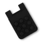 This silicone wallet pouch adheres to the back of your phone and can provide stress relief. It can carry your ID, credit cards, or room cards. Complies with Prop 65. 57.1mm W x 92.47mm H