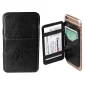 This easy-to-use soft PU leather magic wallet has a open front pocket and real 3M™ removable adhesive panel to attach to smartphones. Front open pocket holds 1 to 2 cards (approximately 2.25"w x 2.5"h). Four interior elastic straps keep your money and cards secure. Avoid overfilling to maintain optimal stretch of elastics. The double-sided 3M™ removable adhesive panel comes unattached inside wallet. Can be used as a standalone wallet or with a smartphone. 2.5" W x 4.25" H x 0.25" D