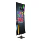 This display features a durable steel frame with a long-lasting, powder-coated finish. 13" x 13" base. Telescoping pole with thumbscrew lets you adjust the hardware for custom banner sizes. Banner attaches to the pole with snap rails for a clean finish (four snap rails included in kit). Your artwork will be printed on Titan 11 mil polyester. Display can hold one or two banners (one banner included; additional banners sold separately). One-year warranty. Complies with Prop 65. 13.25" L x 30" W x 92" H