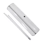 Spruce up your environment with this modern retractor that allows for easily changing your message on the fly. Available in black or white. Flip lever telescoping pole makes setup and adjustments simple. Easy to install replaceable graphic. Complies with Prop 65. 8.625" L x 35.125" W x 88.25" H