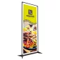 This lightweight display features a contemporary design that looks great in any environment. Fold-out legs keep the display stable. Tension corner springs keep the banner centered and offer tool-free installation. Each tension corner spring features two hooks so you can create a double-sided display by adding a second banner (second banner sold separately). Your artwork will be printed on Titan 13 oz. smooth scrim vinyl. Banner features clear plastic grommets. Complies with Prop 65. 15.25" L x 41" W x 81.75" H