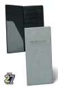 Check Presenter, cover is made with European 'faux' leather like material, black moire liner with 2 clear pockets along with clear credit card pocket. 9 1/8" L x 5" W