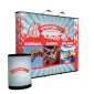The best-selling Show 'N Rise floor display is perfect for use at multiple events. Your artwork will be printed on mural panels that are constructed of Titan no-curl laminated media. High-grade aluminum frame with bayonet locking system keeps the display stable. Shock cord magnet rails hold panels in place. LED lights included. Case-to-Counter Conversion Kit and hardware case included. Two-year warranty on frame; one-year warranty on panels. Complies with Prop 65. 14" L x 110" W x 92" H