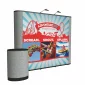 The best-selling Show 'N Rise floor display is perfect for use at multiple events. Center panels are constructed of Titan no-curl laminated media, which can be imprinted with full-color artwork; end panels feature high-quality loop fabric. High-grade aluminum frame with bayonet locking system keeps the display stable. Shock cord magnet rails hold panels in place. LED lights included. Case-to-Counter Conversion Kit and hardware case included. Two-year warranty on frame; one-year warranty on panel. Complies with Prop 65. 14" L x 110" W x 92" H