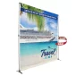 The Bravo is the most durable and dependable expanding display available. A flip-lock clamping system lets you adjust height; push-button connectors on the horizontal poles let you adjust width. Reinforced joints keep the graphics taut over an extended period of time. Small feet for a discreet footprint. Your artwork will be dye sublimated on recycled polyester knit fabric. Custom banner sizes available (call for quote). Carry case included. Two-year warranty on hardware. Complies with Prop 65. 13.875" L x 94" W x 94.125" H