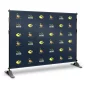 Expandable Kiosk printed on one side in sublimation only - Height (3'6" to 8'1") - Width (4'10" to 10'4") Adjustable - No Design or Color Restriction - Polyester 210g - Carrying Bag Included