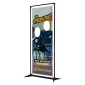 Let your guests become part of the show with this creative spin on our traditional FrameWorx display. Your artwork will be printed on Titan 13 oz. smooth scrim vinyl. Fold-out legs for a small, stable footprint. Each tension spring features a double-sided hook so you can hang one banner or two. Banners attach using low-profile clear grommets. Tension corner springs keep banners centered and offer tool-free installation. Face cutout holes are standard and cannot be customized. Complies with Prop 65. 15.375" L x 41" W x 81.75" H