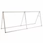 This aluminum A-frame is built to handle outdoor conditions. Aluminum frame is lightweight and portable. Banner (sold separately) attaches to grommets on the frame with ball bungees, making banner changes simple. Carry case included. One-year warranty on hardware. Complies with Prop 65. 24.75" L x 100.75" W x 38" H