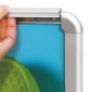 This spring-mounted sign is built to withstand the elements. Posters (sold separately) are protected behind sheets of clear, non-glare acrylic. Tool-free assembly. Edges flip open for easy poster changes. Spring-mounted base allows the sign to gently flex in the wind. One-year warranty. Complies with Prop 65. 29" L x 25.5" W x 44" H