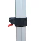 This tent stands out from the crowd with a unique gable shape, allowing for more visible space to share your message. Canopy is constructed of 600 denier polyester. Three canopy cranks on the frame creates a taut gable shape. Legs feature plastic levers for pinch-free height adjustment. Easy-glide Tent Feet (US patent #D760857). The tent can be secured to the ground with the included stake kit to prevent wind damage (failure to secure the tent voids the warranty). Complies with Prop 65. 118" L x 118" W x 131.75" H