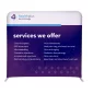 This double-sided display is lightweight and stylish. Using the included EuroFit Connector, several EuroFit displays can be hinged together. Your artwork will be dye sublimated on recycled polyester knit. 100% recycled media is made with REPREVE? fibers Graphic cover slides on like a pillowcase. Joints are labeled for accurate step-by-step frame assembly. Push-button connectors make it easy to assemble. Slim swivel feet allow individual EuroFit displays to be paired at angles. Carry case include. Complies with Prop 65. 19" L x 60.5" W x 54" H