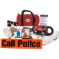 Constructed of heavy duty, water and puncture resistant 600D Polyester, this Medium Barrel Bag (EK-123) features reinforced handles and bottom hook & loop strip that adheres to vehicle's carpet. Includes: 8 Foot, 10 Gauge Booster Cables w/ instructions, Flashlight w/ 2 Mercury-free "D" Batteries, Emergency Mylar Blanket (60" x 82"), Lightweight reusable Safety Vest, Lightweight reusable, recyclable Rain Poncho, 24 Hour Roadside Assistance ($180.00 value), Call Police Banner, Cotton Gloves. 11" L x 6" Diameter