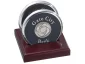 These round solid chrome coasters with solid cherry wood flat stand have no fillers and come with or without medallions. The sets come gift boxed.