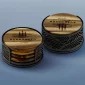 4 Acacia Wood Round Coaster Set with Black Metal Stand