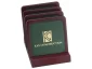 A set of 4 solid cherry wood coasters with or without medallions. They come in an upright stand only and are gift boxed.