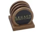 A set of 4 solid walnut wood coasters with or without medallions. They come in an upright stand only and are gift boxed.