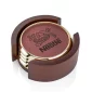 Our exquisite Danville Coaster on Colfax Base is the perfect blend of sophistication and functionality. This set of 4 coasters perfectly nestle into the wooden base for a beautiful & neat display that is designed to elevate your home or office decor while offering exceptional protection for your surfaces. 5.0" W x 2.0" H x 5.0" D