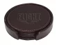 Set of 4 Genuine Leather Round Coasters with Stitched Edge in Holder - brown