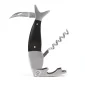 Made of stainless steel and dark oak wood with foil cutter and bottle opener, our sleek and stylish dark wood fish corkscrew is perfect for home or camping. 1.39" H x 4.96" W x 0.59" D