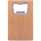The bottle opener is made with genuine wood veneer. To achieve a more natural look, opt for a tone on tone imprint (PMS 4625). Metal components comply with FDA standards. Complies with Prop 65. 2 1/8" L x 3 3/8" W x 1/8" H