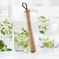 Trudeau 8 1/2" Wood Cocktail Muddler made with food safe Acacia wood and leather. An original Trudeau design made of beautiful acacia wood, its rounded shape will easily extract the aromas of fruits and herbs. It will add a burst of flavour to your cocktails. Plus, this 8 1/2 inch muddler is easy to use in any size recipient, from shakers to tall delicate glasses. It also has a leather strap to easily store it on a hook. 1.5" H x 8.5" W