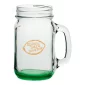 Rustic charm meets versatility with these 16 Oz. Mason Jars with Handles. Crafted from durable glass, these jars add a nostalgic touch to your drinks. With a generous capacity, perfect for iced teas or cocktails-- they're ideal for any occasion. Elevate your sipping experience with these trendy Mason Jar Drinking Glasses classic meets contemporary in every refreshing sip! 4 1/10" W x 5 3/10" H