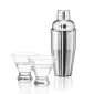 Beautiful combination of Stainless Steel Shaker & Glasses Packaged in a beautiful Satin Lined box Logo (on the glasses) is engraved on the back of the glass to be read when looking through the glass
