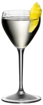 Riedel Drink Specific Nick & Nora Large 6-5/8oz stemmed crystal glass. Set of 42 in an Sable black gift box. The Nick & Nora Large Glass is an evolution of the original Nick & Nora Glass, including an optic design, larger proportions, and increased durability. This glass was named after the characters in the timeless thriller "The Thin Man", and ensures an effortless and chic sip, delivering the drink without forcing the tilt of the head. Lead free. Elegance at it's finest. Recommended hand wash. 7" H x 3.15" Diameter