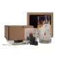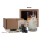 We'd like to raise a glass (or two) to our Speakeasy Gift Set. Why? Because it's classy, handmade, and oozes sophisticated taste. It comes with everything you need to become the life of the party and make your clients feel like they're top shelf. Each set includes two 8 oz. whiskey glasses along with two sets of laser-engraved whiskey stones packaged in custom muslin bags. Make a positive impression with this high-end Speakeasy Gift Set. Complies with Prop 65. 7" W x 4" H x 7" D
