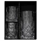 RIEDEL crystal gift set includes 1pcs 21.5oz Spey mixing glass and 2pcs 10.41oz Spey Whiskey glasses. Mixer is 6.75"h x 12"c while the whiskey glasses are 4"h x 10.25"c. Packed together in an Ovation black gift box . RIEDEL crystal is elegance at its' finest. RIEDEL logo laser engraved on the base of each product. Recommended hand wash only.
