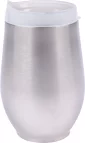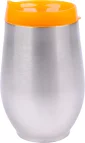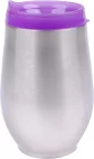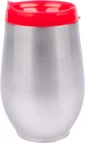 This tumbler is stainless steel with a colored lid. 5 3/4" H